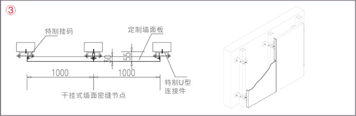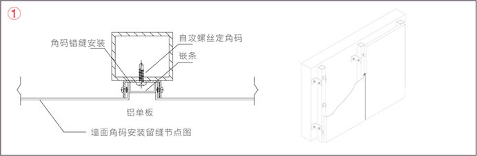 外墙板采用3.0mm厚铝板或蜂窝板,表面氟碳喷涂处理保证10年不退色。角码错缝安装,板与板间之留10-15mm硅胶缝。