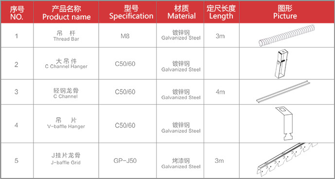 GP-J 条板选用附件表GP-J PLANK SUSPENSION SYSTEM